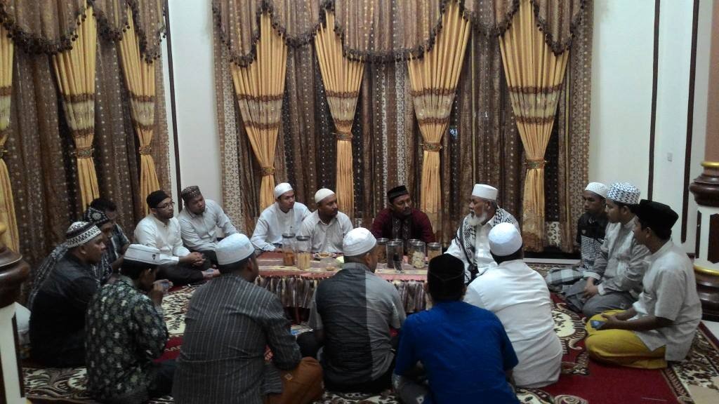 Foto: Tim dari Ikatan Alumni Timur Tengah (IKAT) Aceh saat berkunjung ke kediaman pimpinan Yayasan Pendidikan Islam (YPI) Ummul Ayman Samalanga, Tgk. H. Nuruzzahri Yahya, ba’da magrib tadi di desa Kp. Putoh, Samalanga, Bireuen. (Minggu, 26 September 2015)