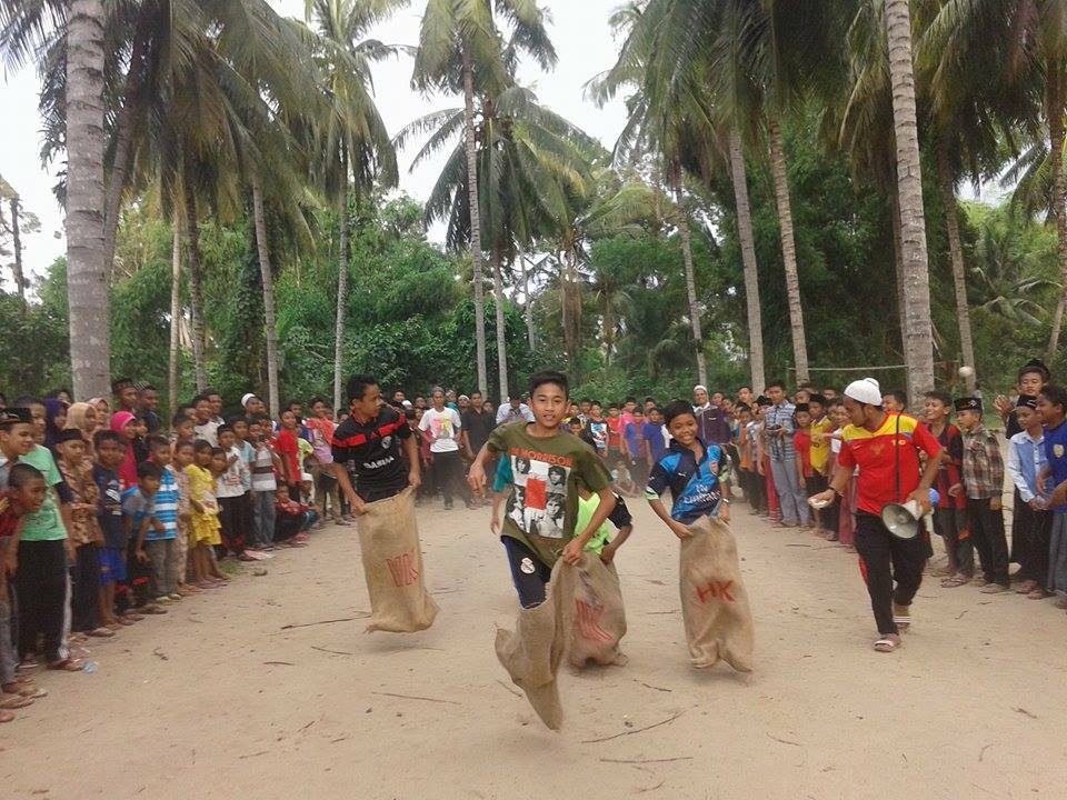 Foto: Santri sedang mengikuti lomba lompat goni sore tadi di stadion Lampoh U Majnun Cup. (Senin, 17 Agustus 2015)