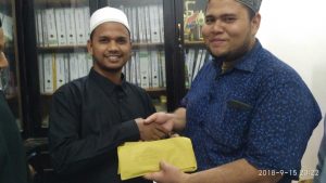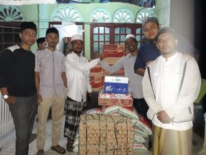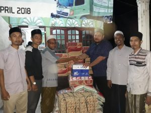 Setelah shalat magrib berjama’ah di Mushalla Dayah setempat, bantuan berupa sembako diserahkan kepada unsur pimpinan dayah, Ustad Syarifuddin.